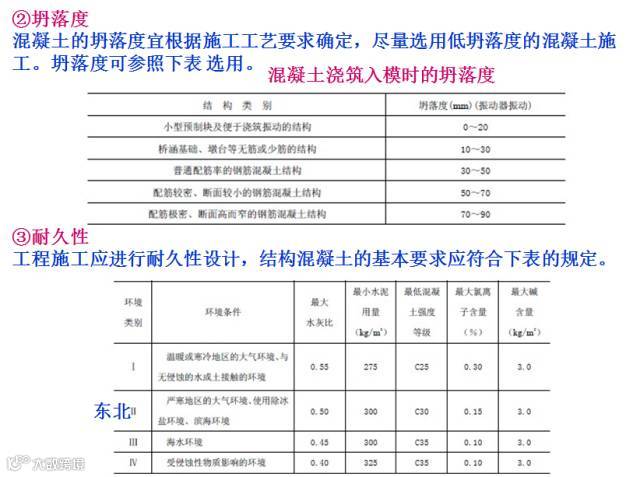 ⑤当结构物混凝土与流动性的地表水或地下水接触时,应采取防水措施,保证