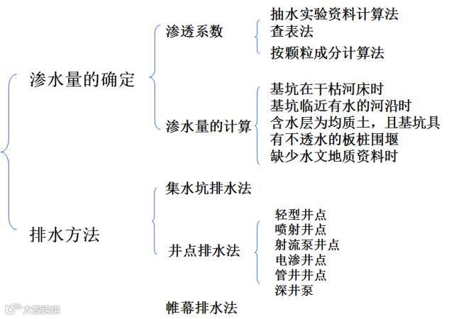基坑坑底一般多位于地下水位以下,地下水会经常渗进坑内,因此必须设法把坑内的水排除,随挖随排,抽水设备的排水能力应大于渗水量的1.5~2.0倍。以便利施工。排水应不影响基坑安全,应不影响农田和周边环境。要排除坑内渗水,首先要估算涌水量,方能选用适当的排水设备。