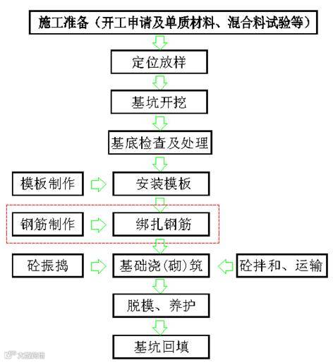 基础定位放样、基坑的开挖、基坑排水、基坑检验与处理、基础砌筑及基坑回填。