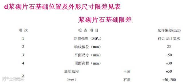 ⑧基础的轴线、边线位置及基底标高应精确测定,检查无误后方可施工。