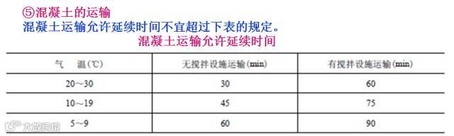 ⑥ 混凝土强度达到1.2MPa 前,不得在其上踩踏;强度达到2.5MPa 前,不得使其承受行人、运输工具、模板、支架及脚手架等荷载。