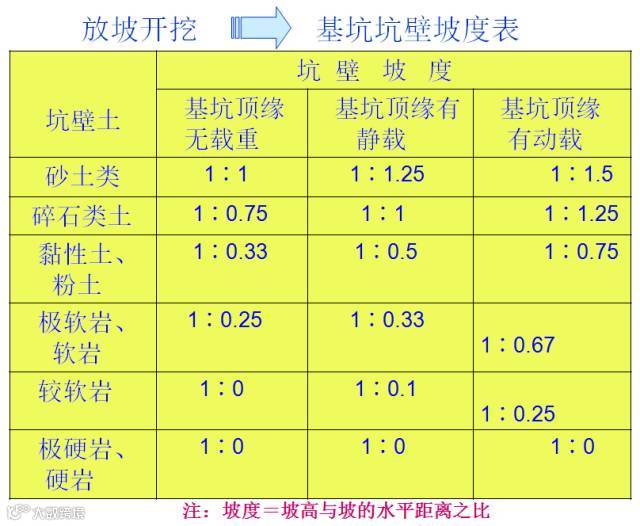 (2) 基坑坑壁坡度应按地质条件、基坑深度、施工方法等情况确定。