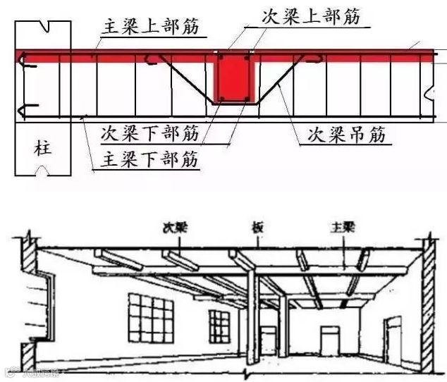 一般情况下,次梁是指两端搭在框架梁上的梁。这类梁是没有抗震要求的,因此在构造上它与框架梁有以下不同,现以国标图集”03G101-1”为例加以说明: