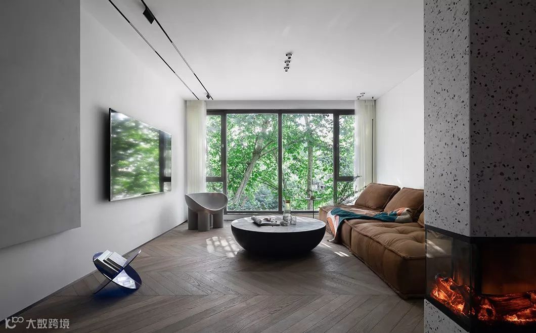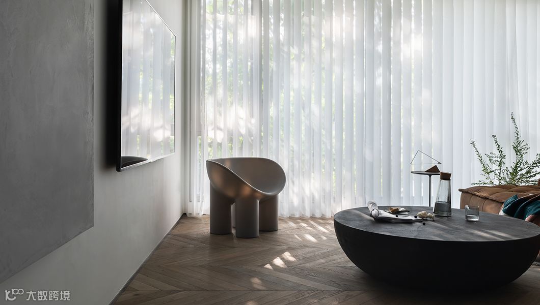 林深时见鹿,老树陪新屋,楼层的高度让屋子和室外的景色密切相关,每天下午的阳光都是顽强的透过树荫洒向斑驳。客厅没有用传统布帘,而是用质感有硬度的垂直帘,开关闭合对光起着不一样的形态作用,对于餐厅和公共空间地面是用水泥砖铺贴,但是到了客厅希望木质的结构能和窗外的景更融合,采用了自然色的鱼骨拼地面(地板品牌:吉步)客厅少用装饰符号,更多是希望内外一景。点击>>工程资料免费下载