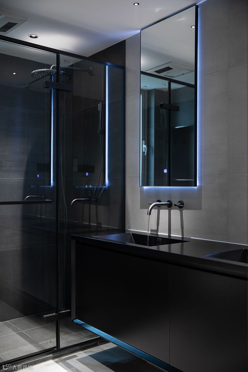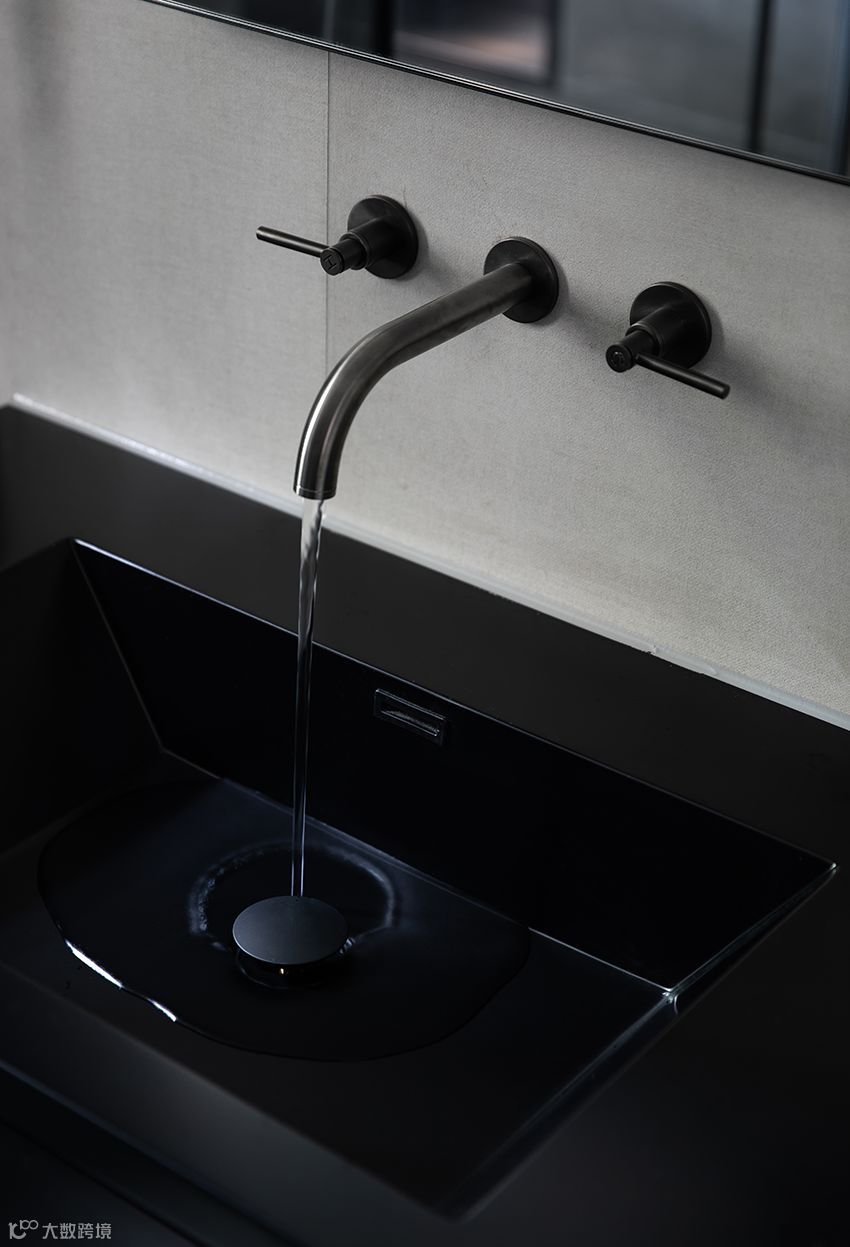 主人房卫生间区域 这个空间的色彩很简单,担心洗护用品的花花绿绿所以把空间的基调做成最耐看的黑白灰。