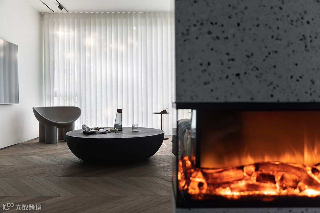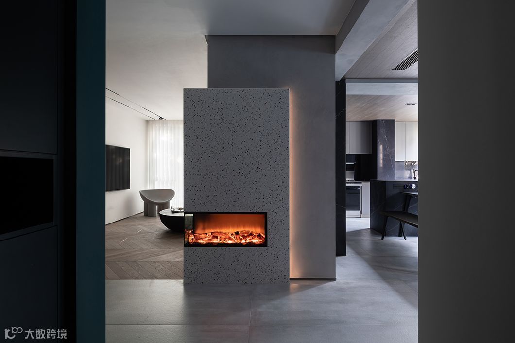 这是下午四点的家里,阳光已经只剩下小尾巴,只开着壁炉和氛围灯带,玄关的材质要好好表扬一番,因为折腾也因为圆满。