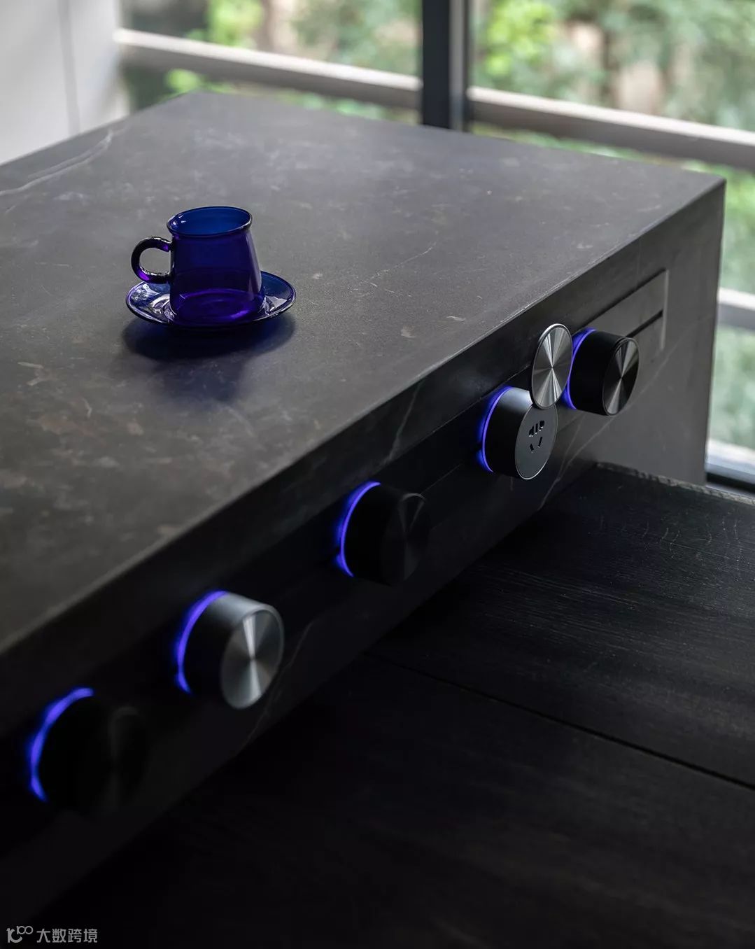 导台和餐桌连接处 餐桌可导台属于独立的存在,地插的使用率又不高,所以选择了暗藏式插座面板,长度可以自由选择,每个开关都可以活动也可以自由取下减少和增加,还是属于看起来有颜值的设备。