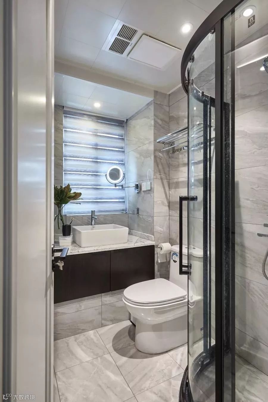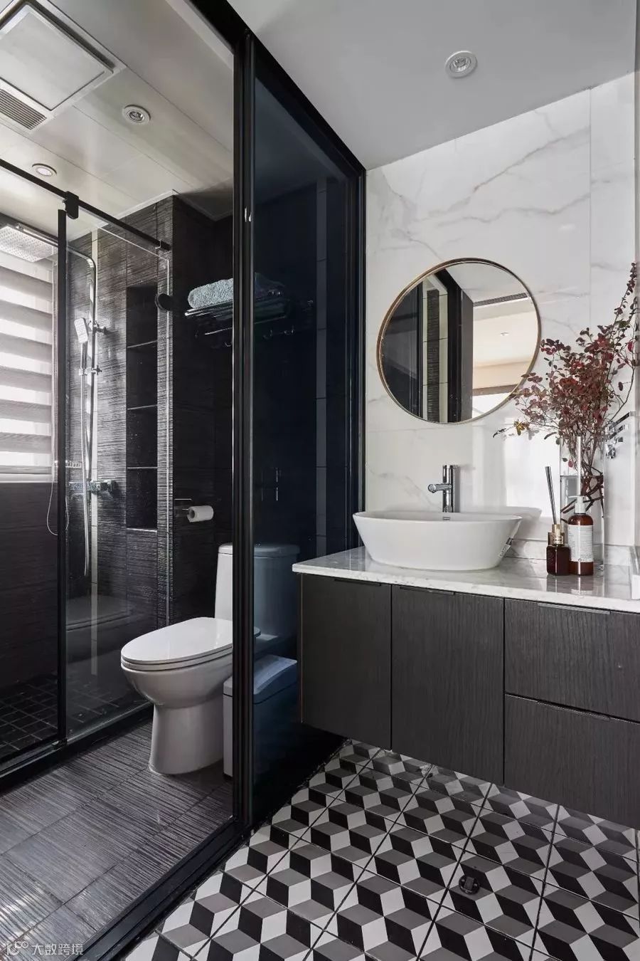 主卫做了干湿分离的设计,淋浴区、马桶和洗手台的地面都做了不一样的设计,让卫生间看起来更为层次感,各个空间也更显独立。