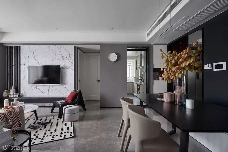 今天分享的是一套建筑面积108平的现代轻奢风三居室案例,设计师以高冷的灰色调为主,在细节处加入了柔情的暗粉色,让整个空间在庄重之余又多出了一丝浪漫感,营造出这样一个轻奢有格调的家。