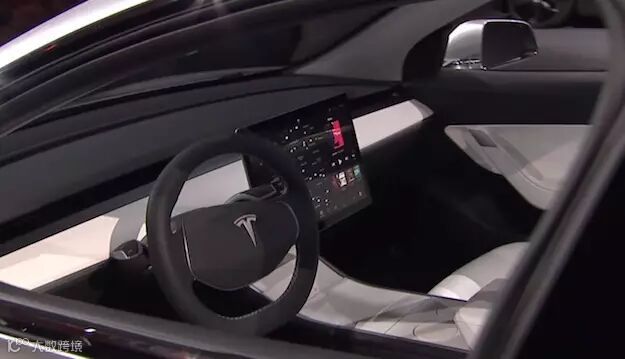 特斯拉在去年展示的Model 3内饰设计