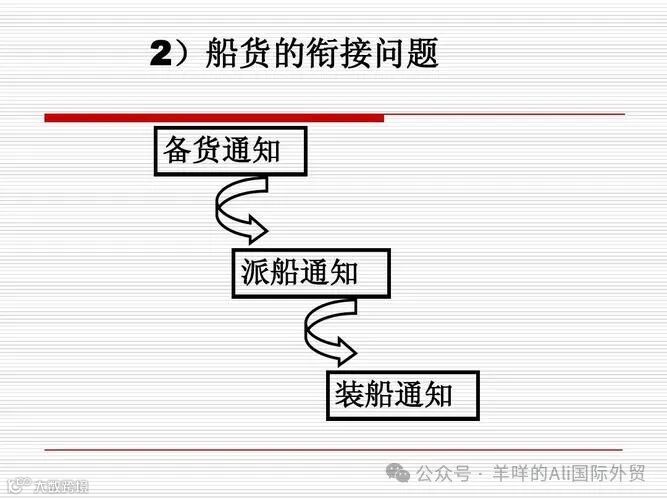 如果是FOB条款,客人会指定运输代理公司(船运公司),当然也有客户委托卖家帮他找的。卖家需要尽快货代公司联系,告知发货要求,货物的出口口岸,船期等情况,同时一定要把工厂的交货时间和船期准时衔接(准时进仓)。达到客人规定的交货期。尽早在交货期之前向货运公司发出书面定仓通知(INGORDER)。