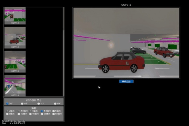 利用Fuzor软件中的监控模拟功能,对监控布置进行虚拟设计,在模型中不同方位放置摄像头,查看监控范围的角度和广度是否合理、确保监控无盲区,以指导现场摄像头的合理布置。