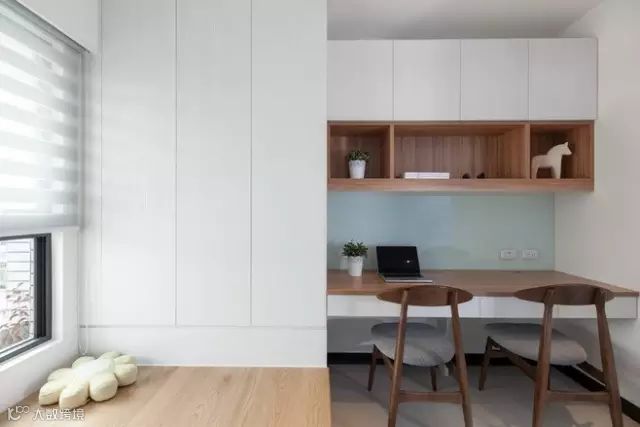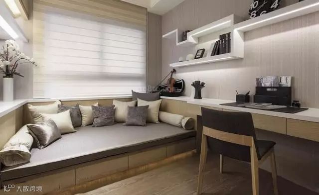 ▼榻榻米是书房的最佳伴侣,在小小的书房内,榻榻米与书桌、书柜一体化搭配,功能十分强大。榻榻米自身强大的储物功能可以满足你的储物需求,让整个空间更加干净整洁。