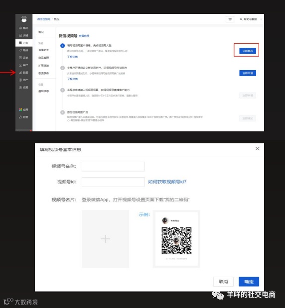 第一步、点击立即填写,填写视频号名称、视频号ID、上传视频号二维码