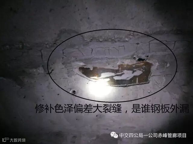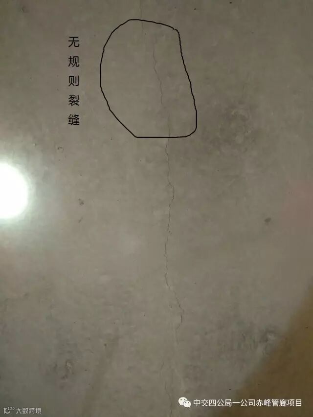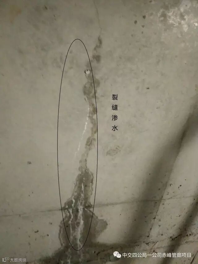 )廊内出现裂缝进行定期观测,对发展裂缝(裂缝随时间变宽,延伸的必须报总工进行处理),对不发展的,现场进行处理
