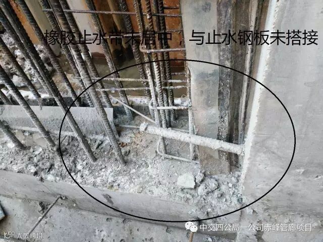 短。未防止此现象,预埋止水钢板必须按图纸要求埋置,对接无缝满焊,与橡胶止水带必须搭接到伸缩缝处。