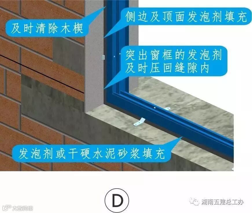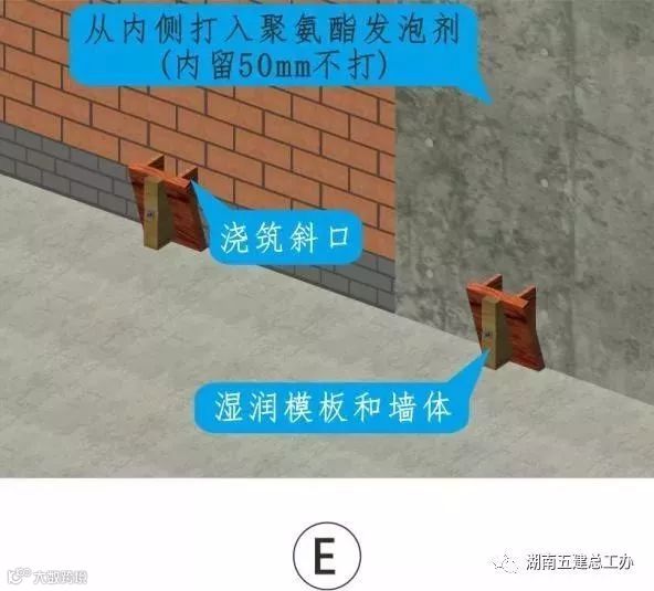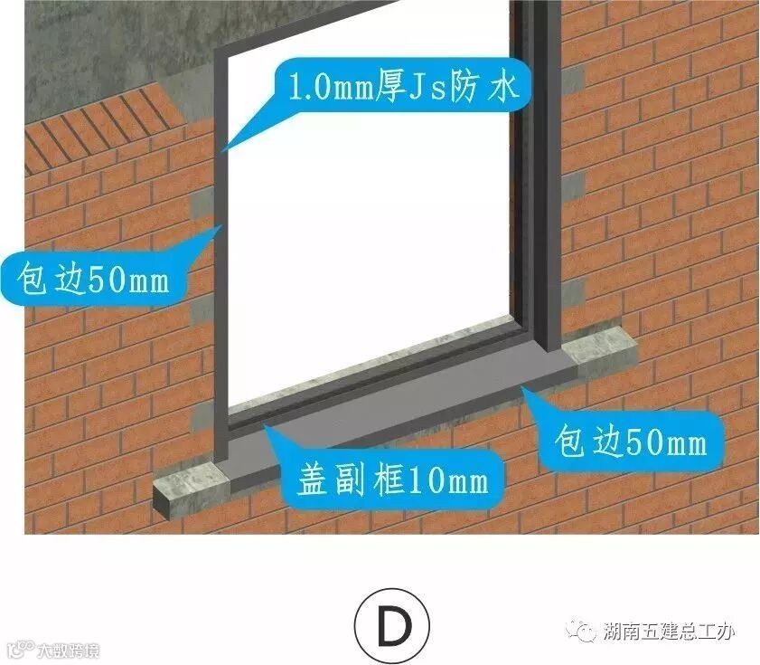 E.塞缝砂浆干燥后或发泡剂固化后,在洞口外侧四周分遍涂刷JS 防水,如基层为砖砌体则需在防水部位抹一层底灰。