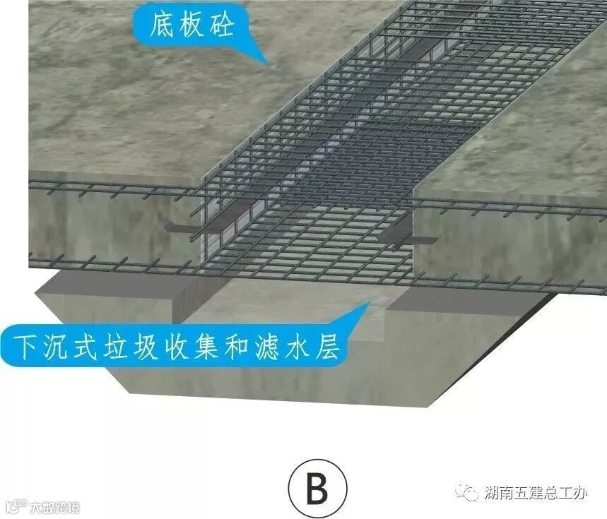 F.后浇带水量较大无法排除或最后一段后浇带施工时,应预埋钢排水管,管底伸入滤水层管顶出底板面100mm。