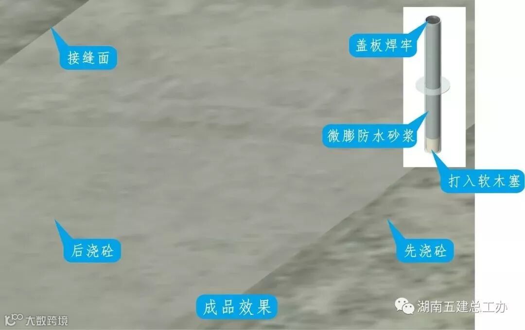 E.采用微膨防水砼浇筑,如分段分期浇筑可能产生施工冷缝时应增设钢板止水带,与原止水钢板搭接50mm围焊饱满。