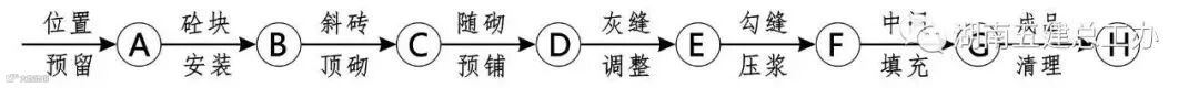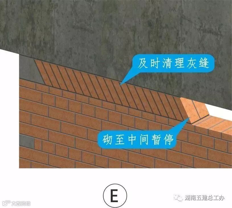 E.墙长在2.5米以内可从一端封至另一端,反之应从二端往中间砌,并提前调整斜砖灰缝宽度,以尽可能使中间倒三角填充块预制化。
