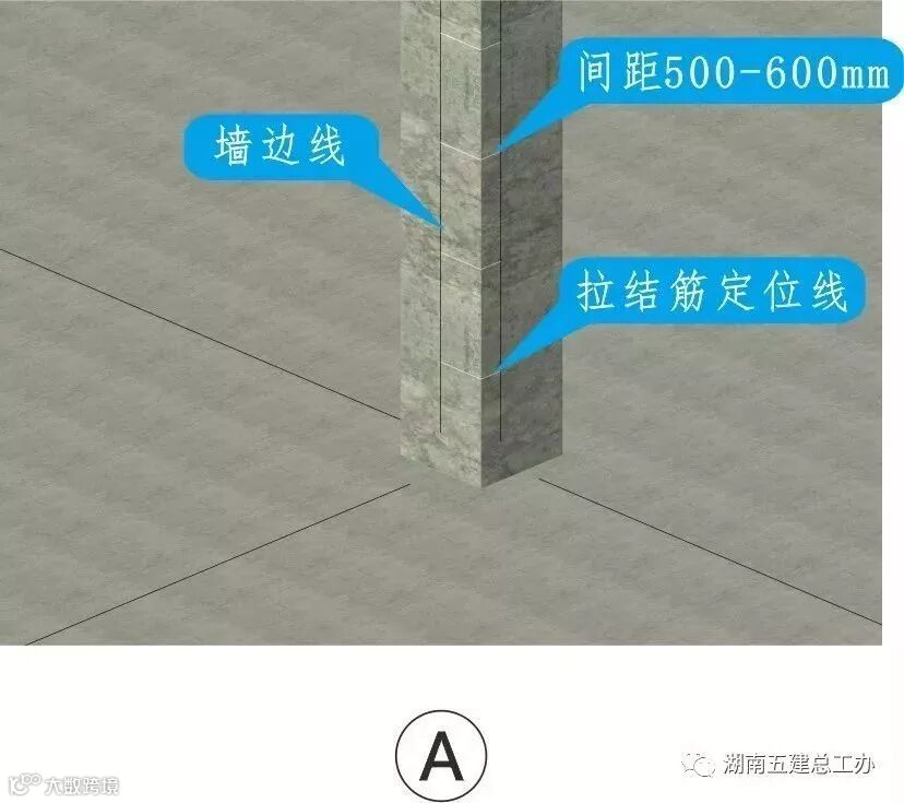 A.该层砌筑7天前准备植筋,根据主体控制线在柱、墙上弹出砌体边线和拉结筋定位线,结合砌体材料设置间距。