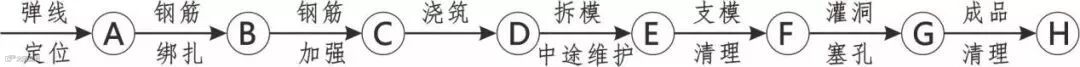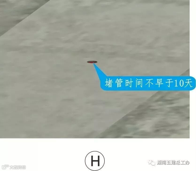 H.待定型模板拆除后,及时清理板底塑料垫,并用水泥砂浆修补,再从楼板上部用干硬性微膨砂浆手工分段塞填螺杆孔。