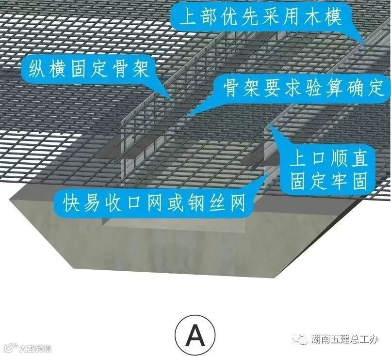 A.止水钢板下采用快易收口网或多层钢丝网模,上口采用快易收口网或木模板,如为木模板需开口成锯齿形。