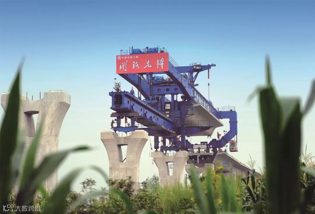 2019年1月,QJ550架桥机正在落梁对位,运梁车返回梁场继续装梁。