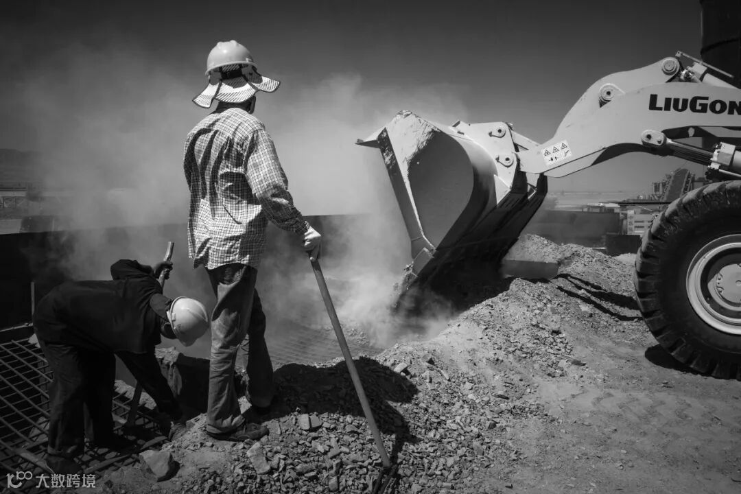 1986年7月,拍摄于中铁二局衡(衡阳)广(广州)铁路复线建设工地。高温酷暑、烈日灼身,在旧横石中铁二局五处工地上的铁路建设火热场景,几个头戴安全藤帽、赤着身子正在汽车上卸碎石的工人,他们躬着背、曲着腰,他们是默默无闻的平凡劳动者,他们也正是中国铁路建设的坚固脊梁!