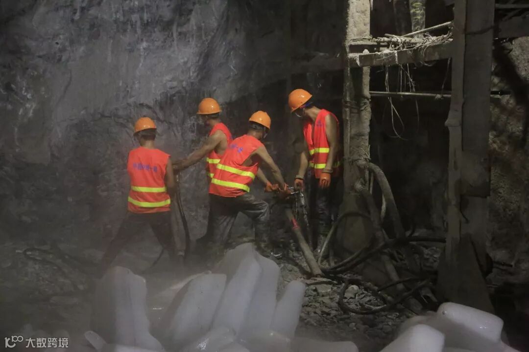 2017年5月23日,中铁一局施工的大柱山隧道出口端处于高地温区段,工人们采用冰块降温的方法,保证了施工顺利进行。