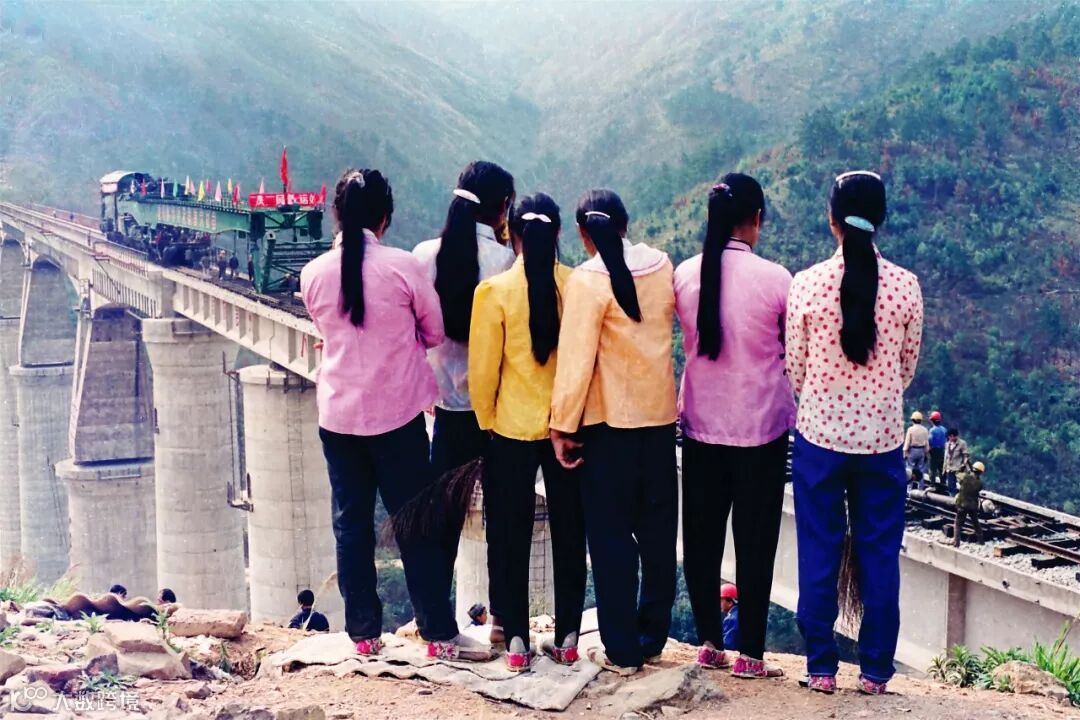 1996年5月的一天,我在中铁二局南昆铁路广西田阳县境内铺轨架梁施工现场拍摄宣传片,抬头看到当地几位女年青,正站在一高坡上用好奇的眼光看着不远处的架梁。我没有打扰她们,而是快速地爬上坡,以她们极有特点的背影为前景,以架梁作业现场为主题,定格了这一永恒的瞬间。