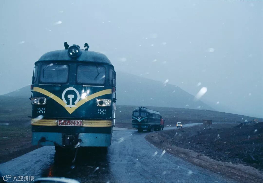 2006年4月12日,青藏铁路建设者把铺轨用的内燃机车拆解,通过汽车运输到青藏高原。
