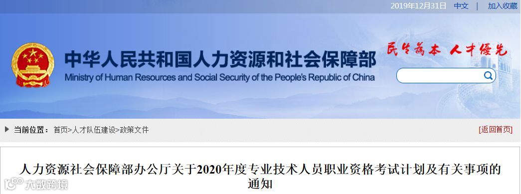 2020年度专业技术人员职业资格考试计划及有关事项的通知