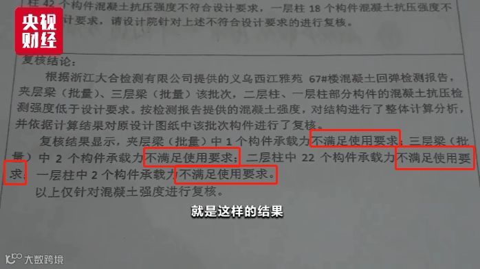 “西江雅苑”业主 吴先生:据我了解,每家每户都有这个报告,都是有这些字“不符合设计要求”、“达不到使用要求”……这意味着这个房子不合格,相当于危房。我排两个月的队买了个危房,这多可笑。