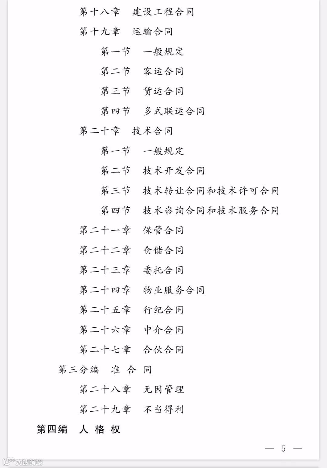 1.2、《中华人民共和国民法典(草案)》(2019年12月16日稿),合同法,共二十九章,五百二十五条,新增六章、九十七条。