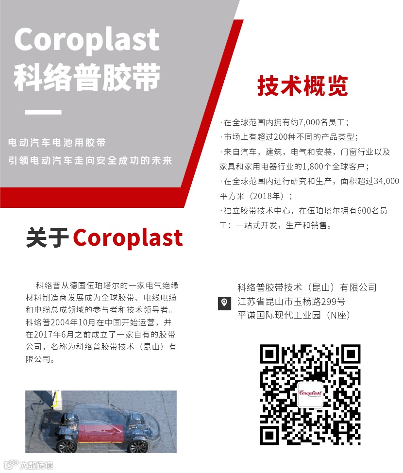 电池是电动汽车的核心部件,电池制造商一直在寻找具有成本效益又能够帮助他们安装且起到保护作用的解决方案,科络普胶带提供的正是可以提高电池系统稳定性的智能产品。科络普胶带深耕电动汽车解决方案行业15年之久,是领先的技术胶带制造商之一。基于科络普多种多样的高性能胶带、特殊泡棉和薄膜,专为电动汽车电池制造的各种应用提供了定制化胶粘解决方案,广泛适用于新能源汽车电池结构。
