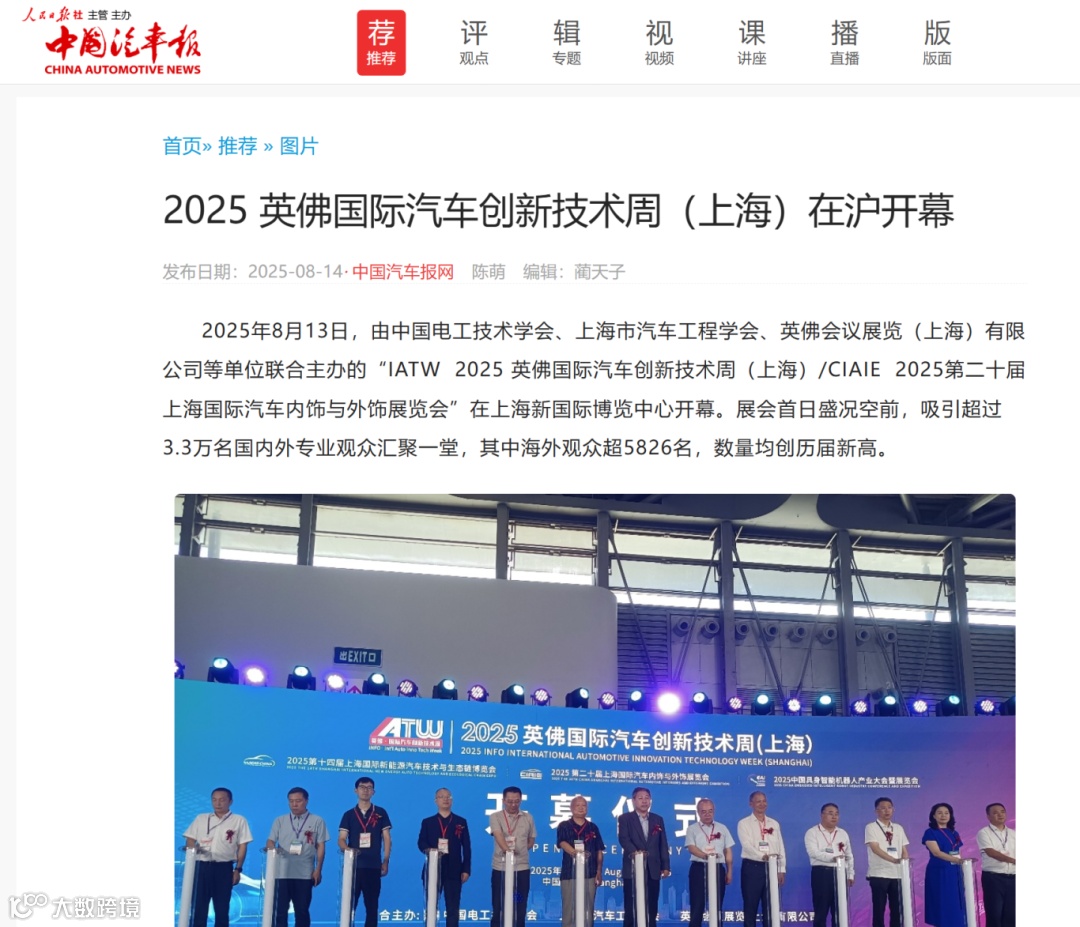 经过三天的思想碰撞与技术展示,由中国电工技术学会、上海市汽车工程学会、英佛会议展览(上海)有限公司等单位联合主办的“IATW 2025英佛国际汽车创新技术周(上海)/NEAS CHINA 2025第十四届上海国际新能源汽车技术与生态链博览会”于8月15日圆满落幕。