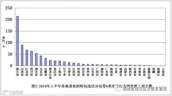 从查处的转包、违法分包等4类违法行为看,浙江、山西、江苏3省查处项目相对较多(见图2)。点击>>工程资料免费下载