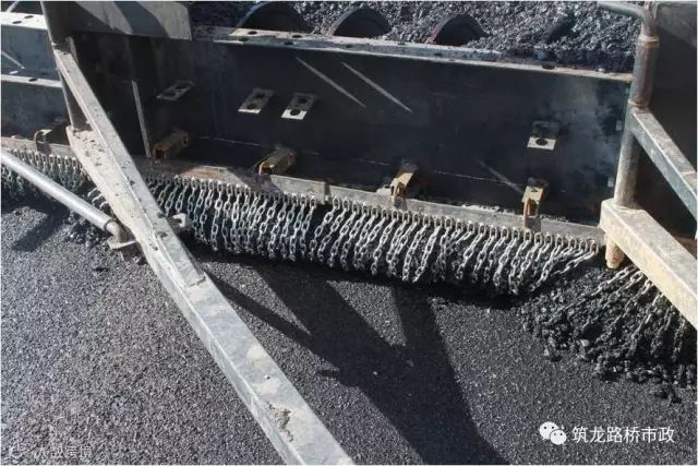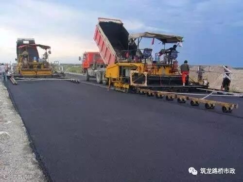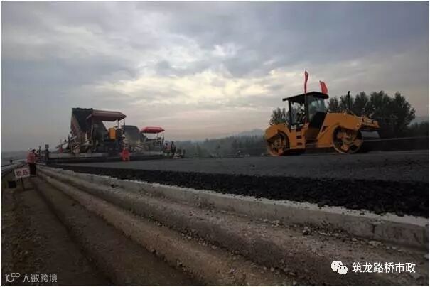 (12)沥青上、中面层施工过程中,要安排专人紧跟在摊铺机后用矿泉水瓶向已完工的面层上浇水,并观察渗水情况,以便及时通知拌合站进行施工配合比的调整。