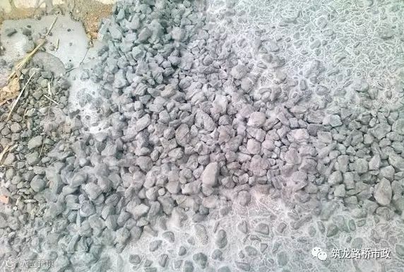 (2)层铺法施工时,上下层间有浮土或因潮湿而形成隔层,表层被行车推移。