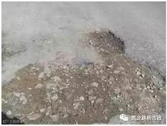 (4)在原沥青路面上作沥青加铺层时,老路面上未洒粘层油、或低温施工、或加铺层渗水,在春融季节,行车的作用下,使加铺沥青层破坏脱落。