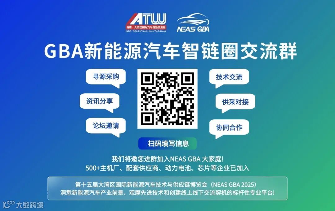 速进!专业技术交流·精准供采对接·最新资讯共享·独家活动邀请——你想要的这里都有!识别二维码进入【GBA新能源汽车智链圈交流群】,欢迎主机厂、配套供应商、动力电池、芯片等企业加入!
