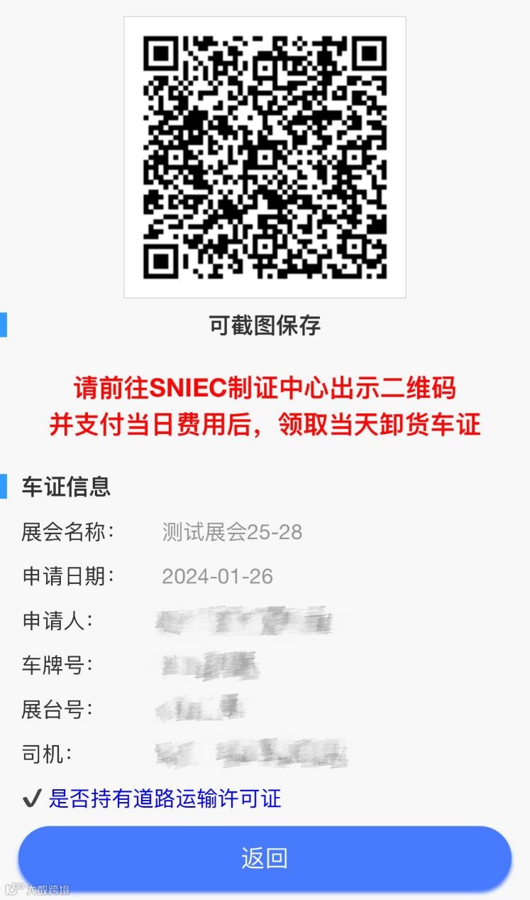 请务必准确填写每一项信息,例如:手机号、展台号、车牌号。便于抵达制证中心现场后,可顺利办理卸货车证