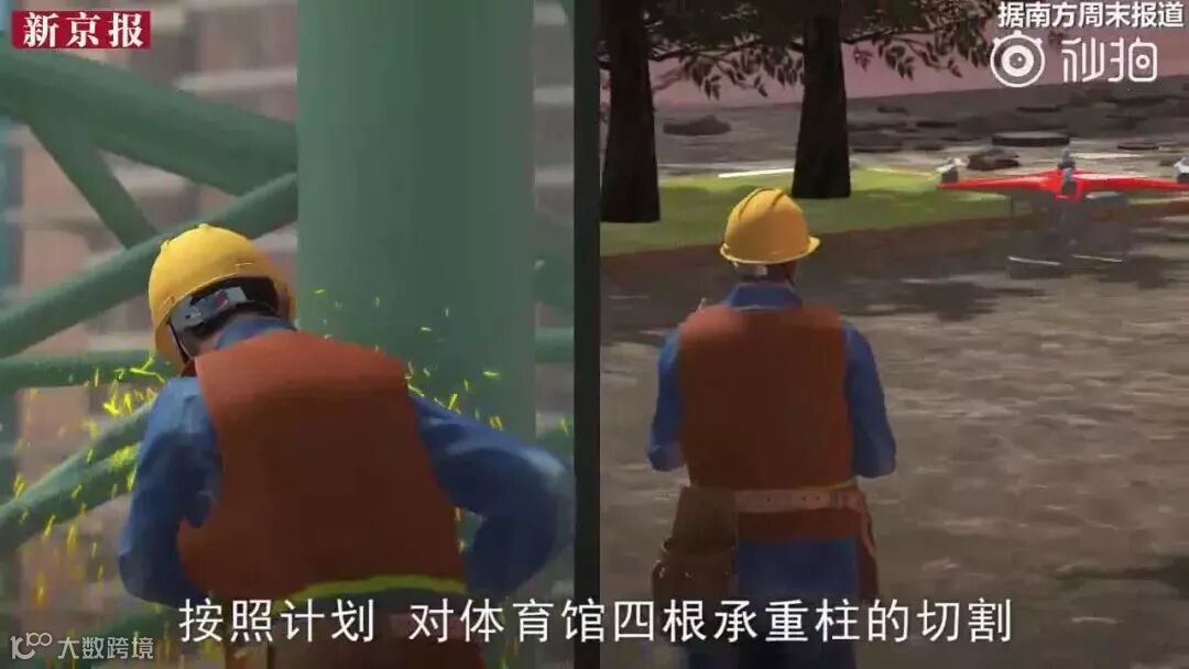 但有专家表示,人工氧割技术很成熟,而无人机切割没有太多技术资料。需要工人将钢索套在切割过的柱子上,由工程车拉倒。