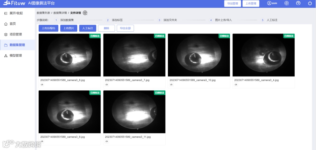 2. 提供数据管理功能,可轻松地导入COCO格式的三方数据。在数据管理中,用户可以为同一数据集添加不同的文件夹,可方便自由地选择数据集中的部分数据作为训练集,以更灵活地组织和管理数据。每当用户对数据集进行更改或更新时,平台会创建一个新的版本,并记录相关的修改和注释,以便用户追踪和查看数据集的演变历程。轻松应对各类场景中的数据漂移,精准训练AI模型。