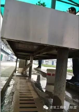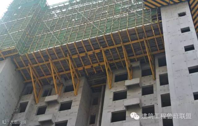 悬挑式脚手架悬挑过长采用定型化支架加固。