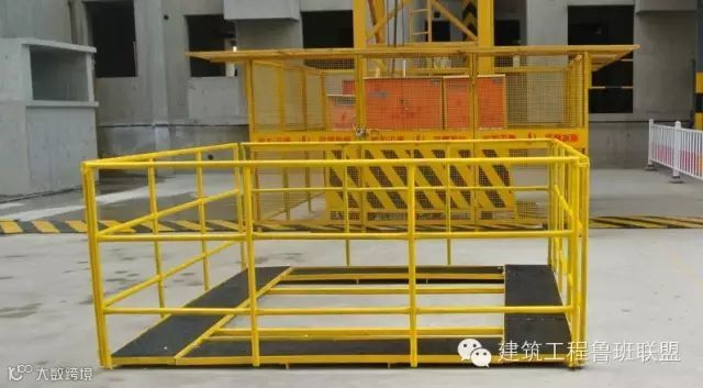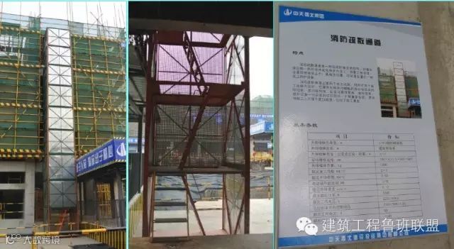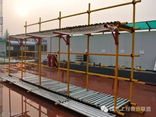 外架采用定尺折形钢板铺设,层间隔离采用定型化支架。