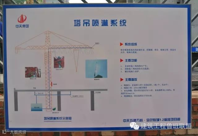 施工现场设置塔吊喷淋控制扬尘、砼养护。