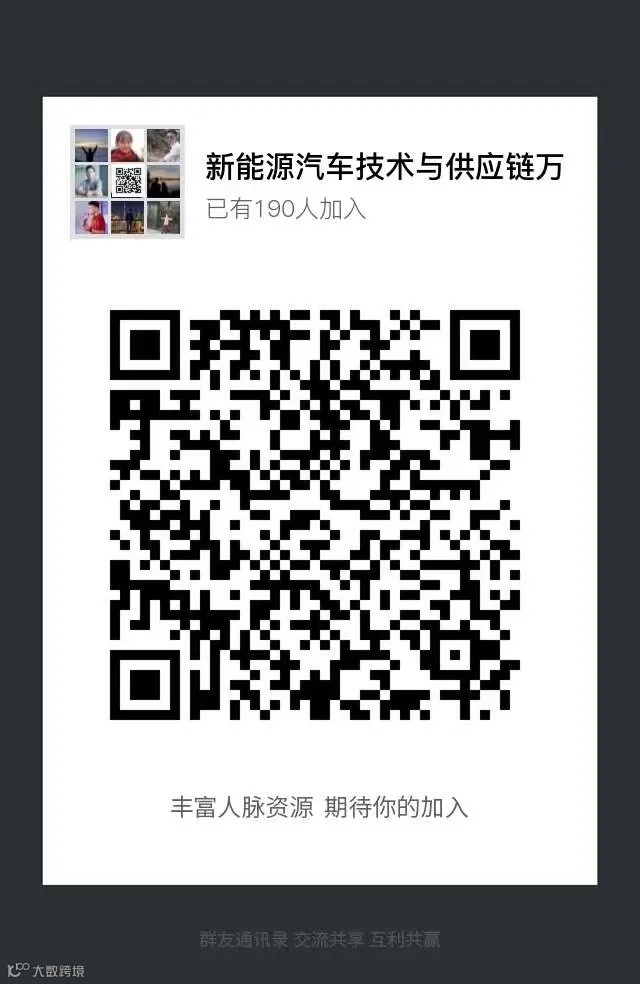 | 进 “国际新能源汽车供应链群”,请加微 13912486111 或扫描二维码,备注新能源+公司名称+姓名+职位+手机号。