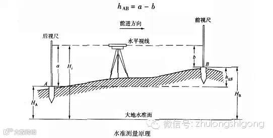 若后视读数大于前视读数,则高差为正,表示B点比A点高,hAB>0;若后视读数小于前视读数,则高差为负,表示B点比A点低,hAB<0。